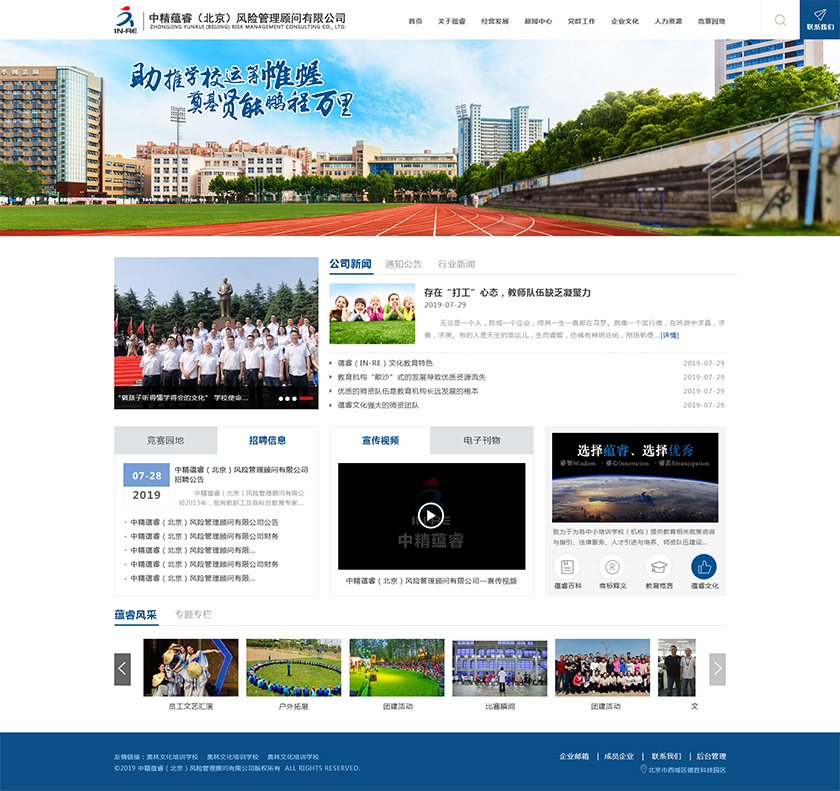 Project Description 中精蕴睿(北京)风险管理顾问有限公司2013年,现有教职工及各科目教育专家80多人,致力于为各中小培训学校(机构) 提供教育相关政策咨询与指引、法律服务、人才引进与培养、师资队伍建设与培训、教学教研与学科创新、市场营销企划、文化 理念塑造与品牌输出的专业化教育管理全方位的综合服务。 Official website address 湘潭http://in-re.com/ I want to share
